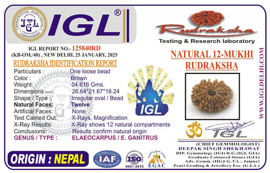 12 Mukhi Collector Nepal Rudraksha | 26.64 mm, 4.61 grams | IGL Certified | Blessings of Surya Dev for Power & Success