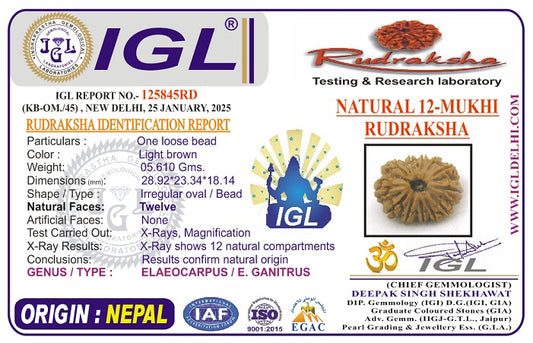 12 Mukhi Super Collector Nepal Rudraksha | IGL Certified | 28.92 mm, 5.61 grams | Solar Essence of Power & Prosperity
